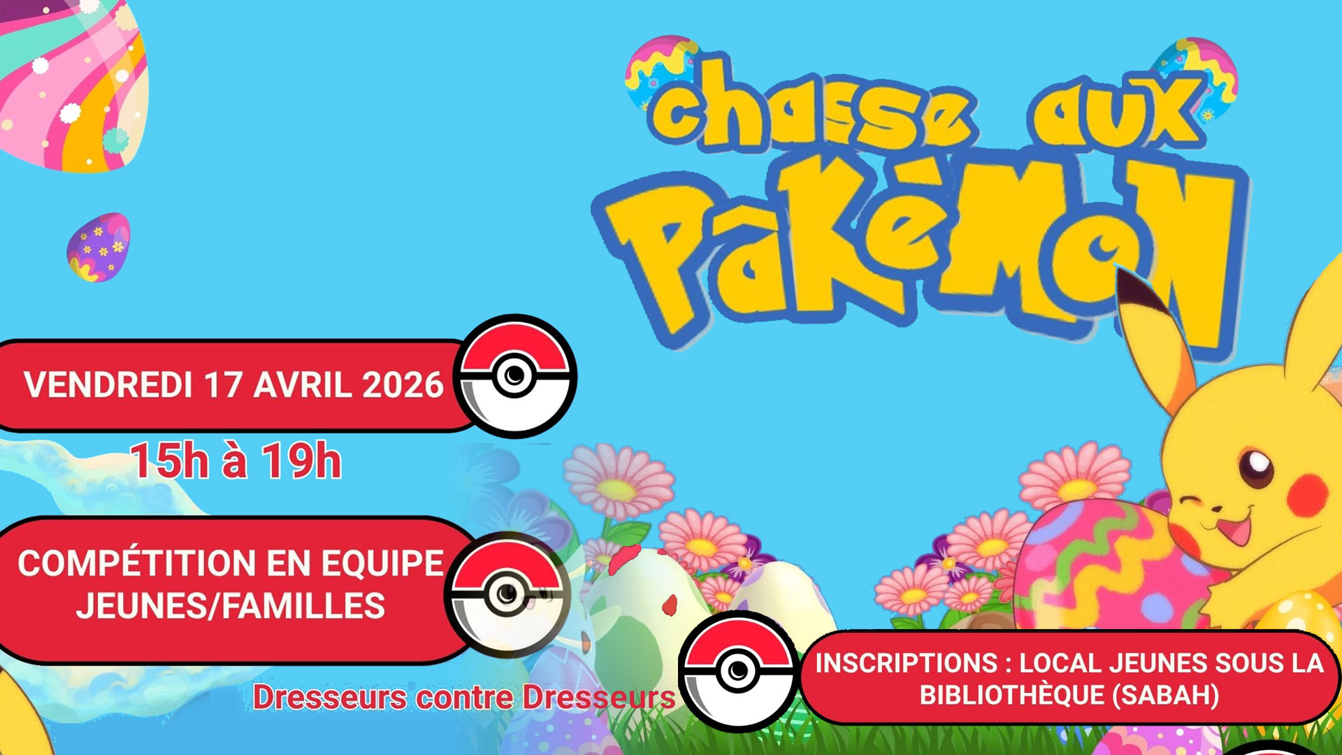 Rendez-vous VENDREDI 17 avril, de 15h à 19h, pour une compétition Dresseurs contre Dresseurs, en équipe Jeunes/Familles